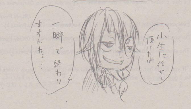 宇喜多主従(直家と明石君)+久秀の落書きでっす! 地味に学パロ。