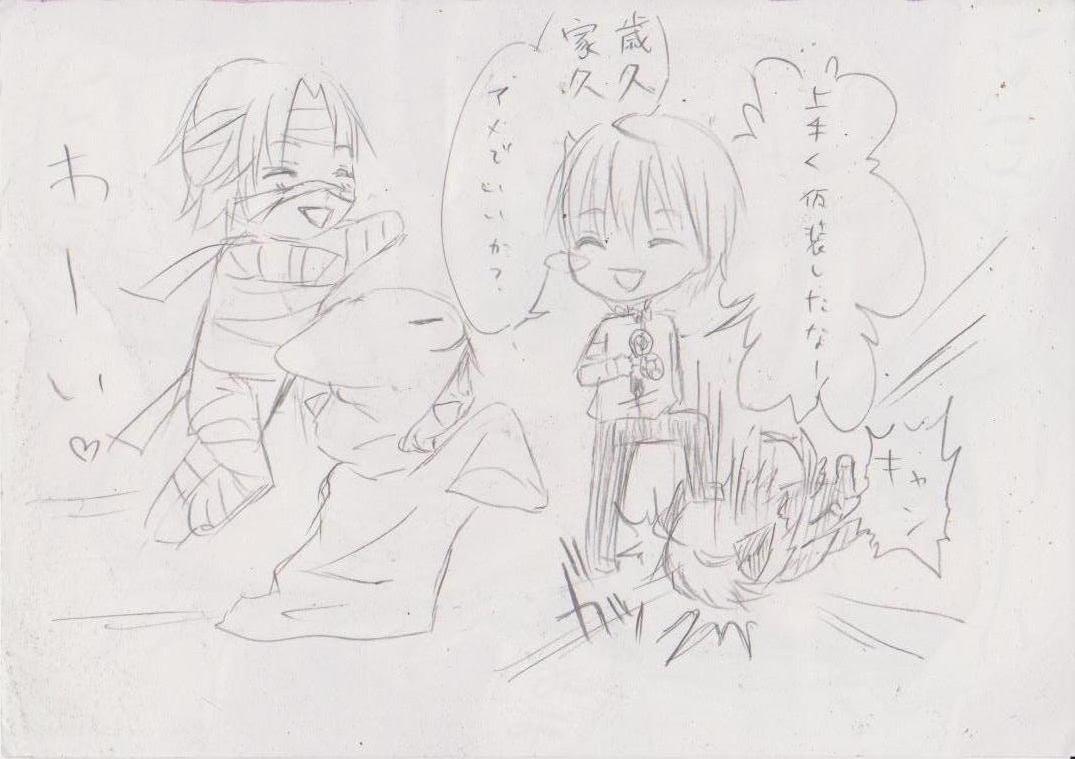 義久が仮装していない理由は、お菓子を与える側の人間である事・結局苛められる義弘を描きたかった事の他に、義久はプライド高いのでコスプレしないと思うという事。でも義弘の前だけしてれば良いよ!(爆)