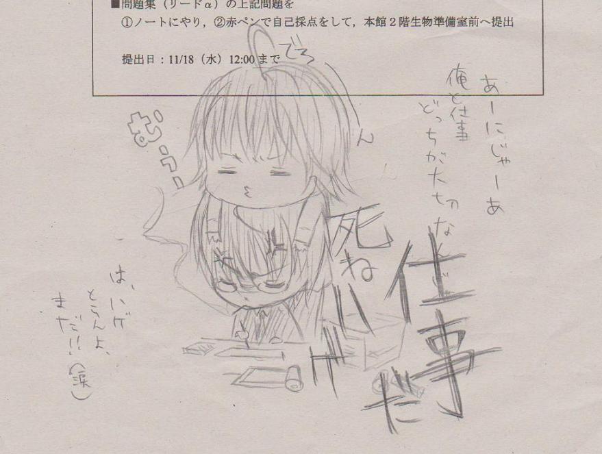 古典のテストがあまりに出来なくて、現実逃避に描き散らした問題用紙の落書きの描き直し。構図は気に入ってたんですが画力があまりに酷かったので描き直しました(笑) サイズは4分の1になりましたが。