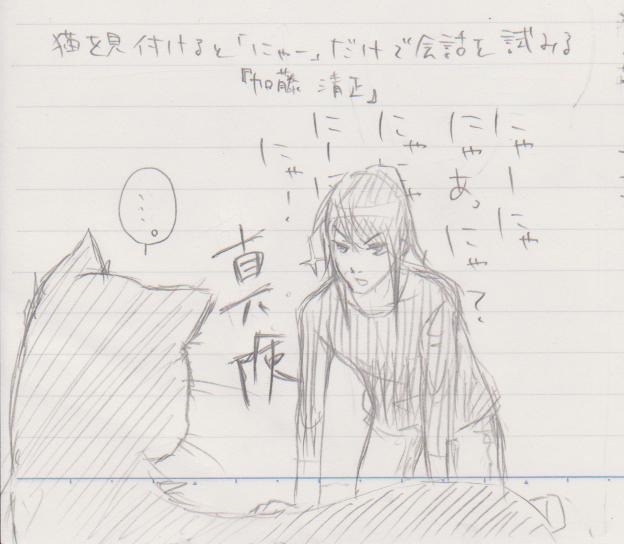 ・猫を見つけると「ニャー」のみで猫と会話を試みる『加藤清正』