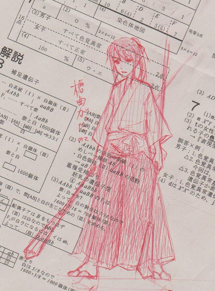 赤ペンだから汚いです。丁寧で線が荒いか、線が綺麗で一発描きかどちらかです(笑)
